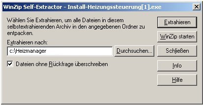 Darin wird das Zielverzeichnis "C:\Heizmanager" vorgeschlagen. Betätigen sie die Taste "Extrahieren".